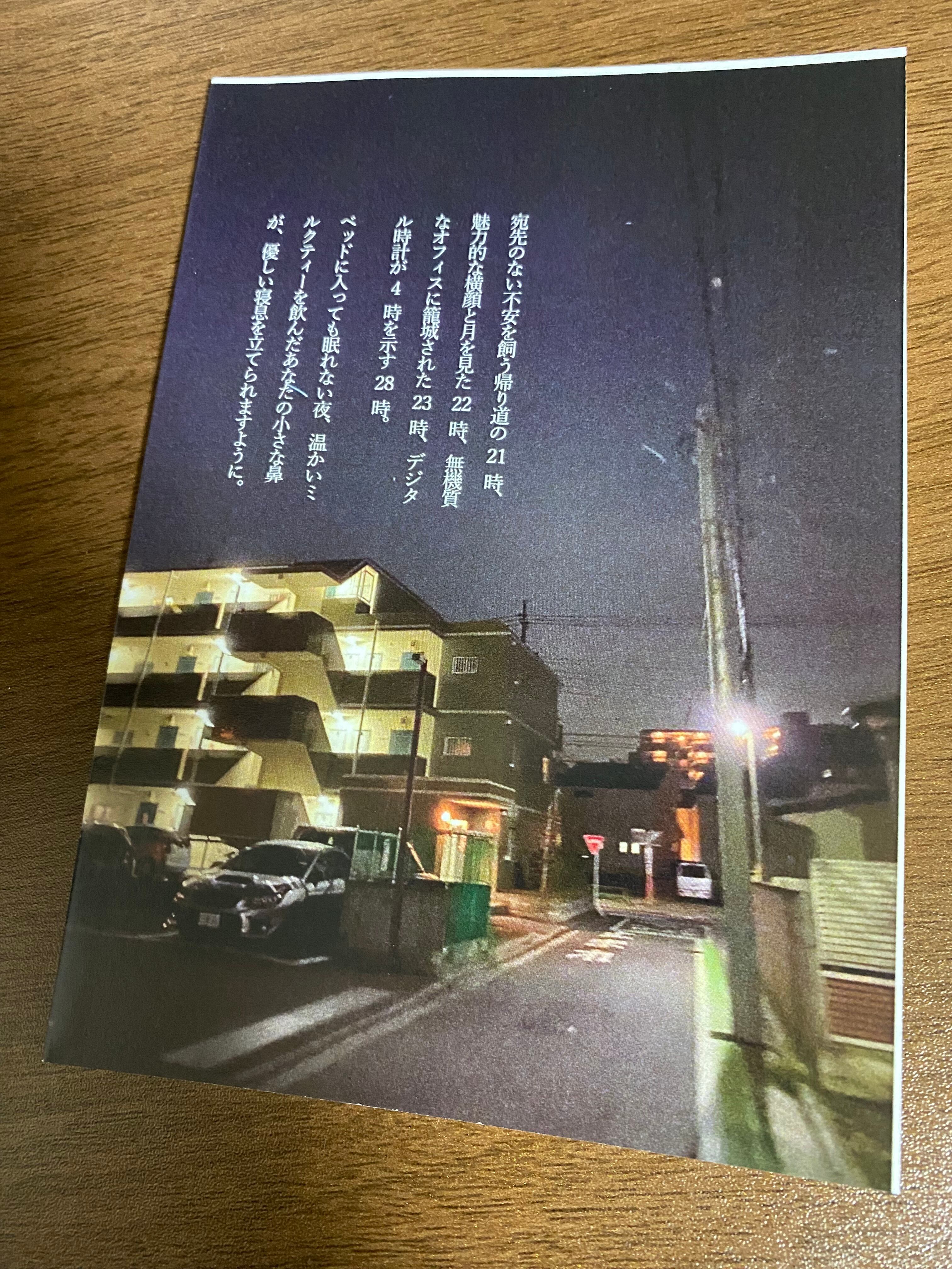 生活の中で感じた、本当に何でもないこと、だからこそ起きてから寝るまでに溶け込むような、そんな感覚を詰め込んだ1冊です。